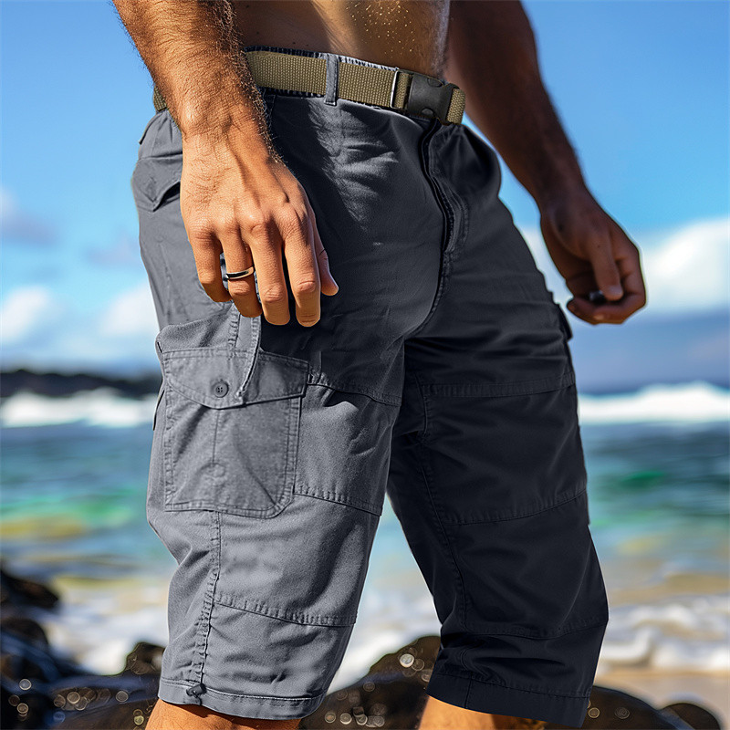 Men's Cargo Shorts Shorts Casual Shorts Hiking Shorts Zipper Pocket Leg Drawstring Plain Comfort Breathable Calf-Length Outdoor Daily Going out Fashion Streetwear Navy Blue Green
