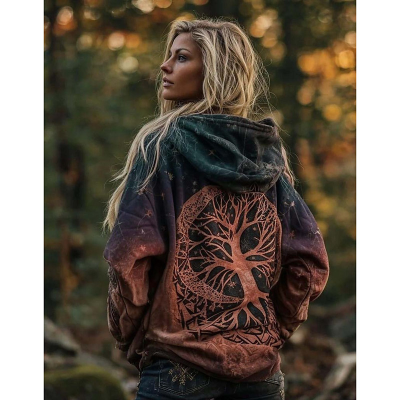 Women's Zip Up Hoodies Graphic Active Vintage Fashion Long Sleeve Hooded Regular Tops Home Street Dailywear Zipper Blue Red Brown Green Spring Fall Winter