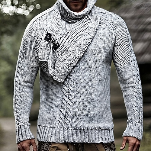 Herren Pullover Strickpullover Gerippt Stricken Normale Oberteile Gestrickt Einfach Rollkragen Mode Basic Urlaub Alltagskleidung Bekleidung Herbst Winter Schwarz Weiß S M L