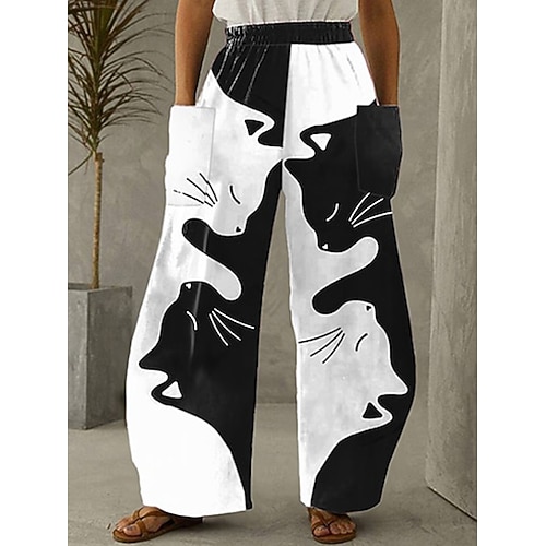 Damen Leinenähnliche Weitbeinige Chinos Vintage Casual Voll Länge Hochbund Grafik Abstrakt Elastischer Bund Unelastisch Casual Täglich Alltag Blau Grau Weiß Braun Sommer Frühling Lockerer Sitz