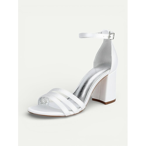 Brautjungfernsandalen für Damen – elfenbeinfarbene Blockabsatz-Hochzeitsschuhe mit Knöchelriemen, elegante offene Zehensandalen für Brautjungfern und festliche Anlässe