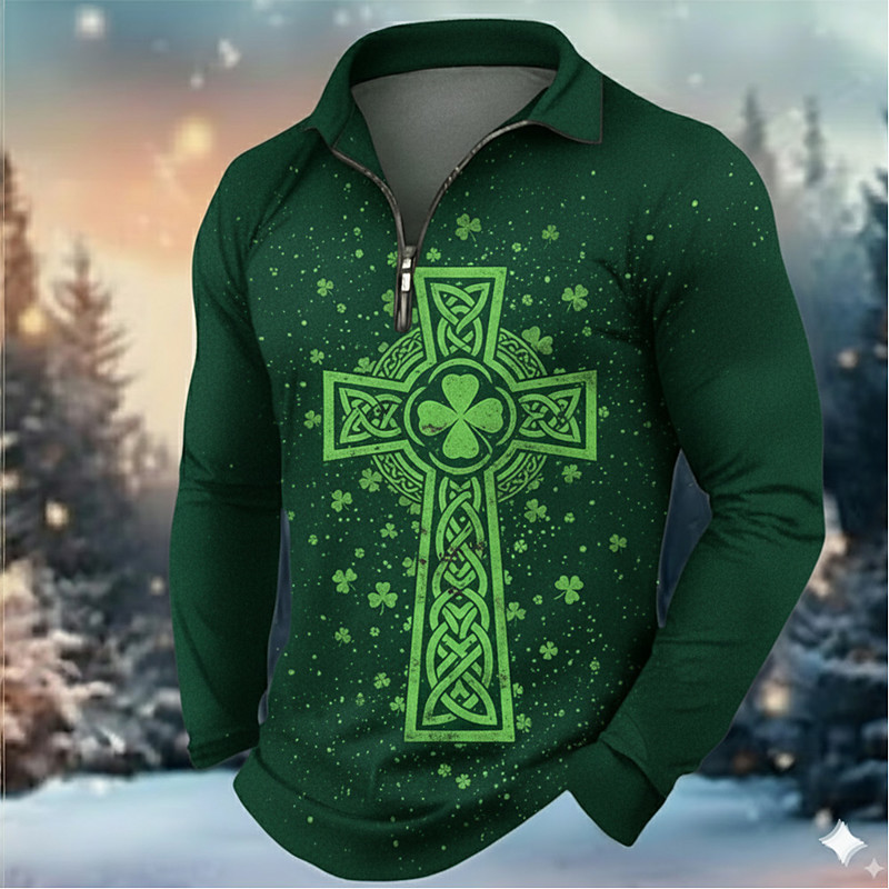 St. Patrick Men's Shamrock Polo Long Sleeve Turndown Modern Leisure Athleisure Casual Daily Festival Zipper 3D Print Spring Fall Black White Green