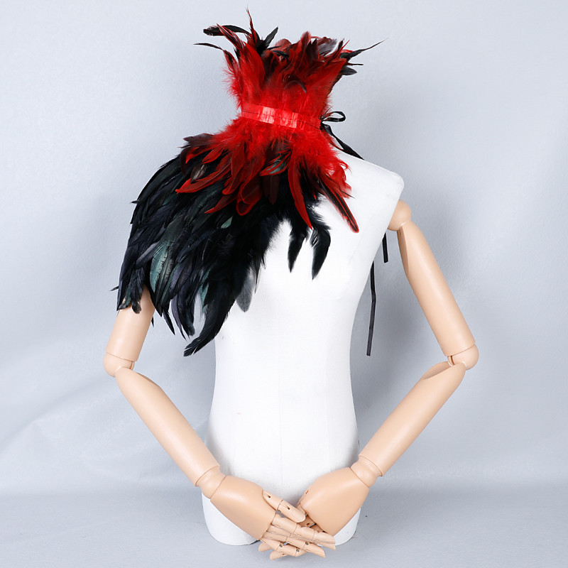 Women's White Feather Cape Shawl with High Collar, Gothic Angel Costume Accessories, Snow Queen Ice Witch Cosplay Shrug
