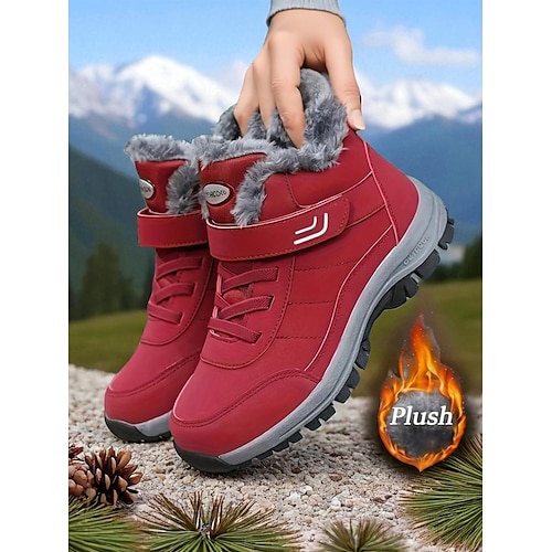 scarponi da trekking invernali impermeabili da donna rosso scuro – ciaspole da esterno antiscivolo, foderate in morbida pelliccia, calde calzature da trekking e da viaggio