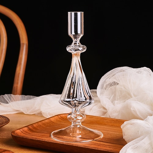 1 Stück europäischer Kerzenständer aus Glas mit Diamantstreifen im Eourt-Stil. Der transparente Glas-Kerzenständer eignet sich als Dekoration für Zuhause, z. B. für Tische in Familien, Hotels, bei