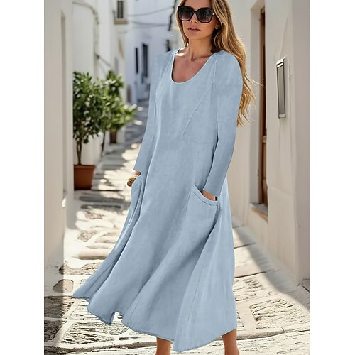 Per donna Abito Midi Misto cotone Abito a Tubino Abito in cotone Elegante Moda Moderno Quotidiano All'aperto Vacanza Vestibilità comoda Semplice Manica Lunga Girocollo Bianco Verde chiaro Rosa Azzurro