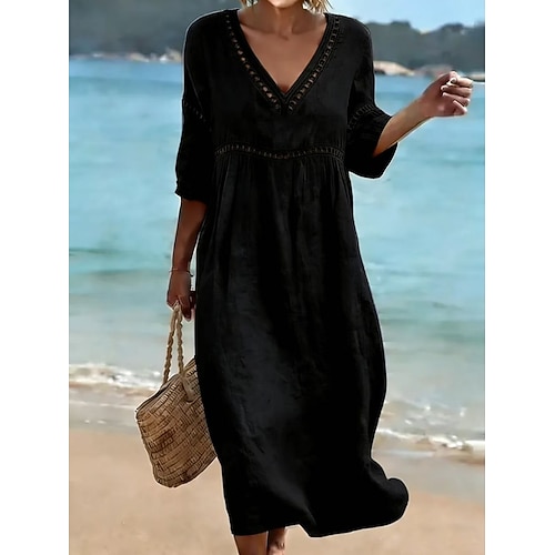Per donna Abito Midi Abito a trapezio Casual All'aperto Spiaggia Uscire Vestibilità comoda Tinta unica Manica 3/4 Scollo a V Blu Nero Giallo Rosa Estate Primavera