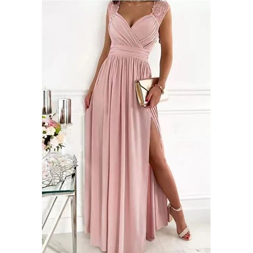 Per donna Abito lungo maxi Abito da Ballo Vestito da Festa Abito a trapezio Elegante Moda Moderno Festa serale Feste Ospite di nozze Vestibilità regolare Semplice Senza Maniche Scollo a V Nero Rosa