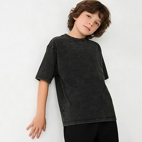 Bambini Ragazzi Maglietta Tee Tinta unica Manica Corta Top bambini All'aperto Moda Cool Estate Nero Dai 4 anni in su