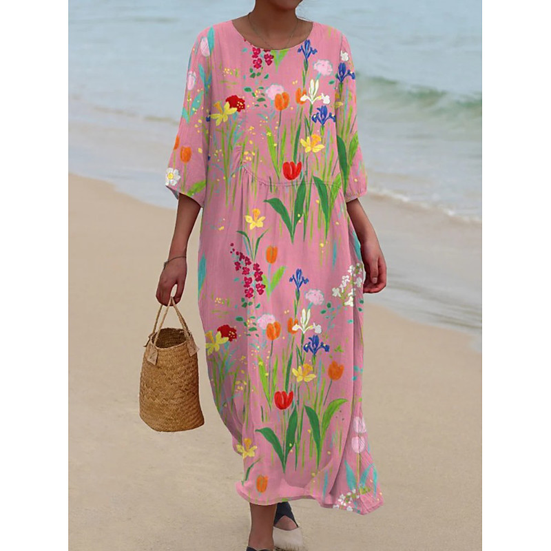 Women's Maxi Dress Boho Crew Neck 3/4 Length Sleeve Shift Dress A Line Dress Casual Daily Date Floral GraphicWhite pring