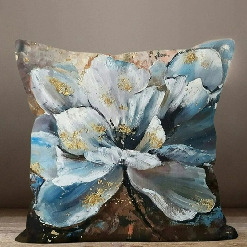 Blue Flower Double Side Pillow Cover 1PC Soft Decorative Square Cushion Case Pillowcase for Bedroom Livingroom Sofa Couch Chair
