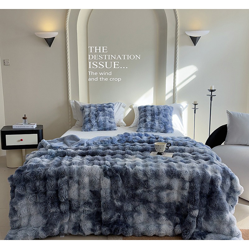 Tuscany Tie-Dye Faux Rabbit Fur Blanket, Double-Layer Thick Plush Throw, Long Pile Fleece Blanket for Office and Home