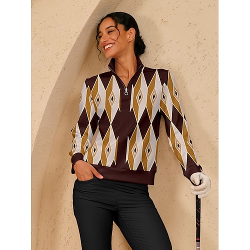 Per donna Felpa da golf Marrone Manica Lunga Top Abbigliamento da golf da donna Abbigliamento Abiti Abbigliamento