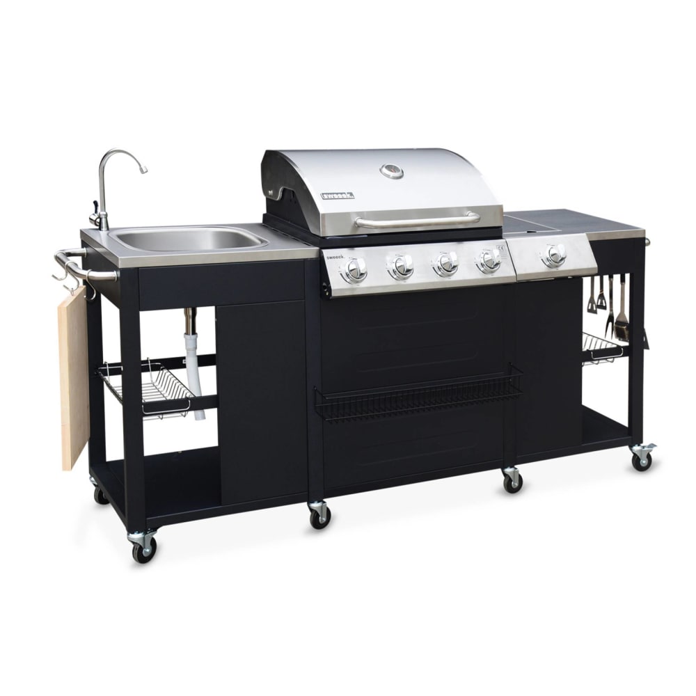 Barbecue a gas a 5 fuochi con 1 bruciatore laterale, nero
