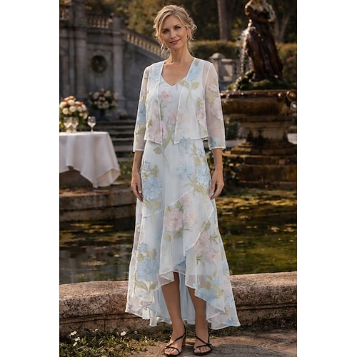 Linea ad A Lunghezza al pavimento Abito da invitata a nozze Abito Formale Abito da sera Abito da cerimonia per signora Manica 3/4 Scollo a V Elegante Ospite di nozze Festa di fidanzamento Chiffon con