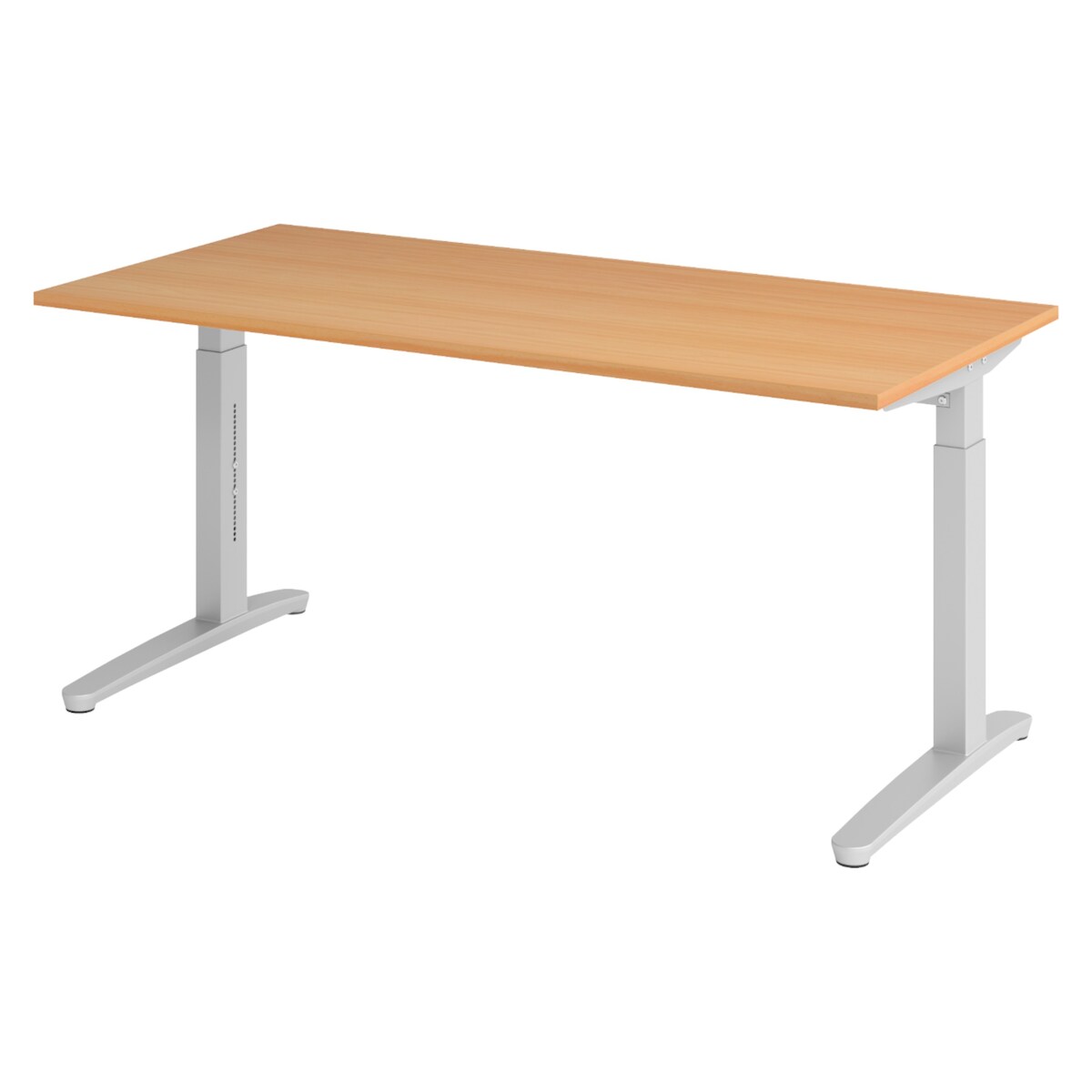 bümö manuell höhenverstellbarer Schreibtisch 160x80 in Buche, Gestell in silber - PC Tisch höhenverstellbar & groß, höhenverstellbarer Tisch Büro,
