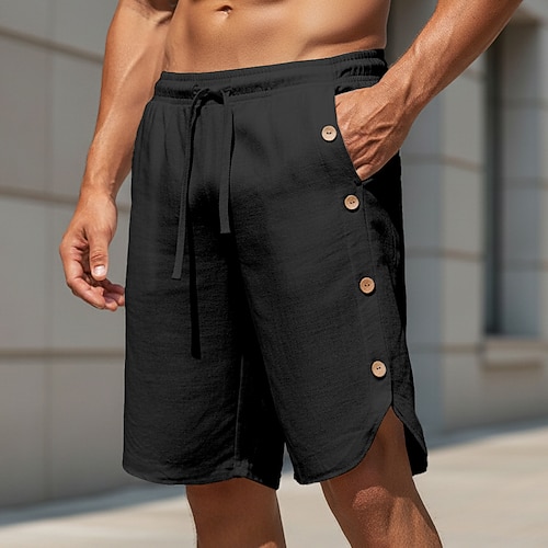 Herren Shorts Leinenshorts Sommershorts Strandshorts Freizeitshorts Kordelzug Elastischer Bund Knöpfe Einfach Komfort Atmungsaktiv Kurz Täglich Outdoor Strand Urlaub Mode Schwarz Weiß Unelastisch