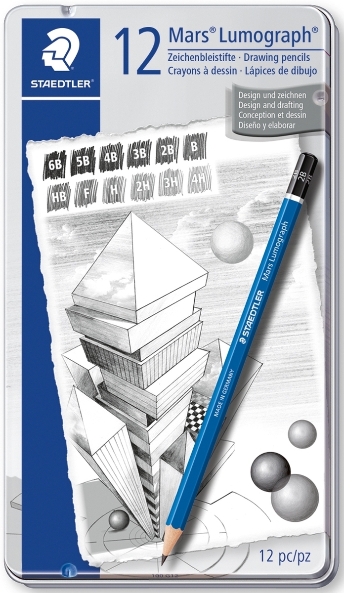 STAEDTLER Bleistift Mars Lumograph im Metalletui 12 Stifte verschiedene Härtegrade Packung mit 5 Stück