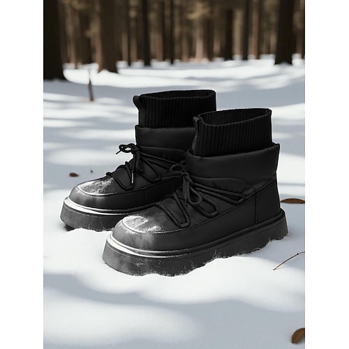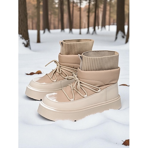 Damen-Winterstiefel aus mandelfarbenem Strick mit Schnürsenkeln und Kunstpelzbesatz – warme, wasserdichte Schneestiefel für Winterabenteuer und Spaziergänge im Freien