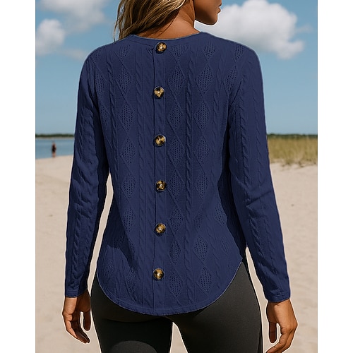 Per donna Felpa Cardigan Elegante Streetwear Casual Tinta unica Girocollo Lavorato a maglia Manica Lunga Top Regolari Maglia Quotidiano Ferie Uscire Blu Nero Primavera Autunno