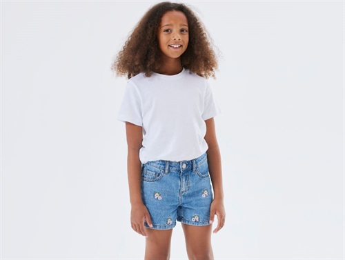 Name It Shorts Medium Blå Denim Med Blomster - Str. 8y 128cm