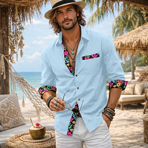 camicia da uomo, camicia di lino, camicia estiva, abbigliamento da spiaggia, camicia con bottoni, floreale, casual, quotidiano, boho, nero, bianco, rosa, grigio, manica lunga, risvolto, estate,