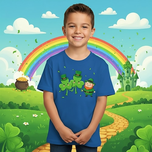 100% Cotone Giorno di San Patrizio Bambini Ragazzi Blu Nero Bianco Trifoglio Giorno di San Patrizio Maglietta Blusa Girocollo Manica Corta All'aperto Abbigliamento Quotidiano Moda Streetwear Designer
