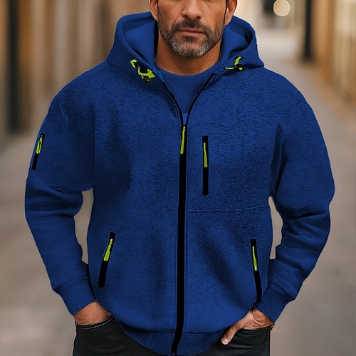 Per uomo Felpa con cappuccio e zip Giacca felpata Felpa con cappuccio Abbigliamento esterno Nero Blu Reale Blu Cachi Grigio chiaro Con Cappuccio Tinta unica Lavoro Casuale Abbigliamento casual alla