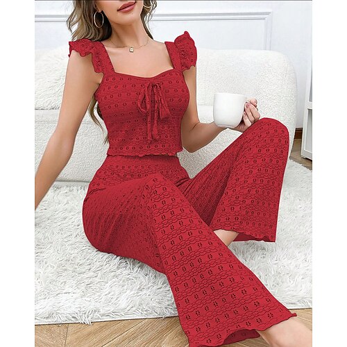 Per donna Set Pigiama Casual Comfort Colore Puro Elastico in vita Canotta Pantalone Quotidiano Casa Senza Maniche Collo quadrato Blu Nero Rosa Rosso Viola Estate Primavera Vestibilità regolare