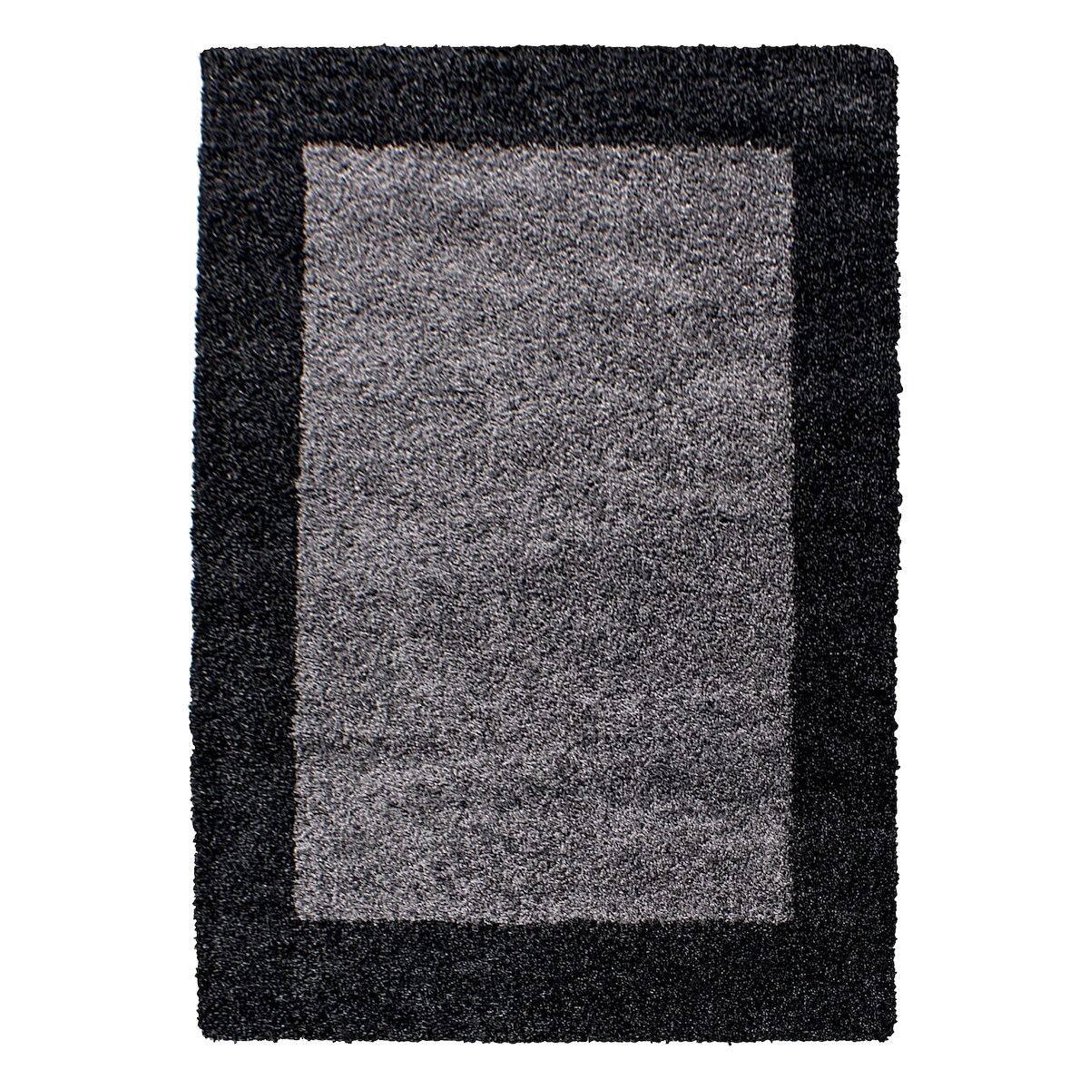 Teppich Wohnzimmer Hochflor Bordüre Weich Flauschig Waschbar Strapazierfähig Schlafzimmer Anthrazit 60x110 cm – RHEIN von Kadima Design