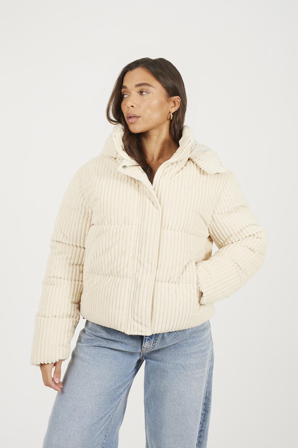 Brave Soul Womens Cream Jumbo Cord Hooded Puffer Jacket - Size 14 UK | Brave Soul Sale | Discount Designer Brands