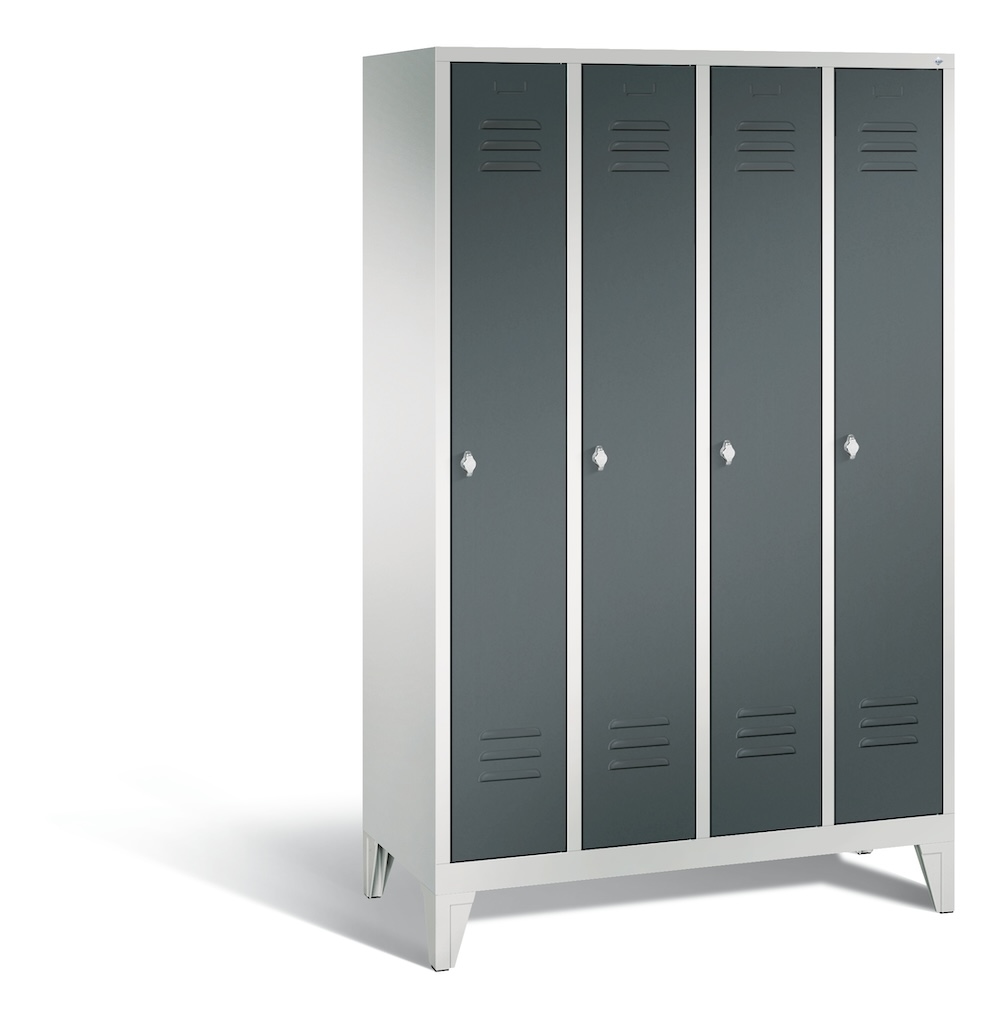 C+P Spind Classic mit Füßen | 4 Abteile | HxBxT 185x30x50cm | Lichtgrau/Anthrazit von PROREGAL