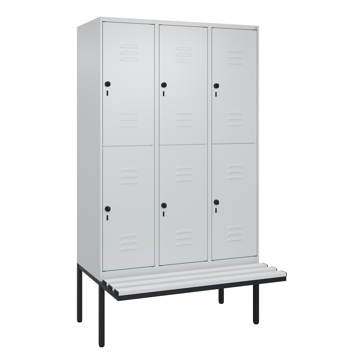 C+P Spind Classic PLUS, Kunststoff schwebende Sitzbank, 6 Abteile, HxBxT 212x120x82cm, Sicherheitsdrehriegel, Hellgrau/Hellgrau von PROREGAL