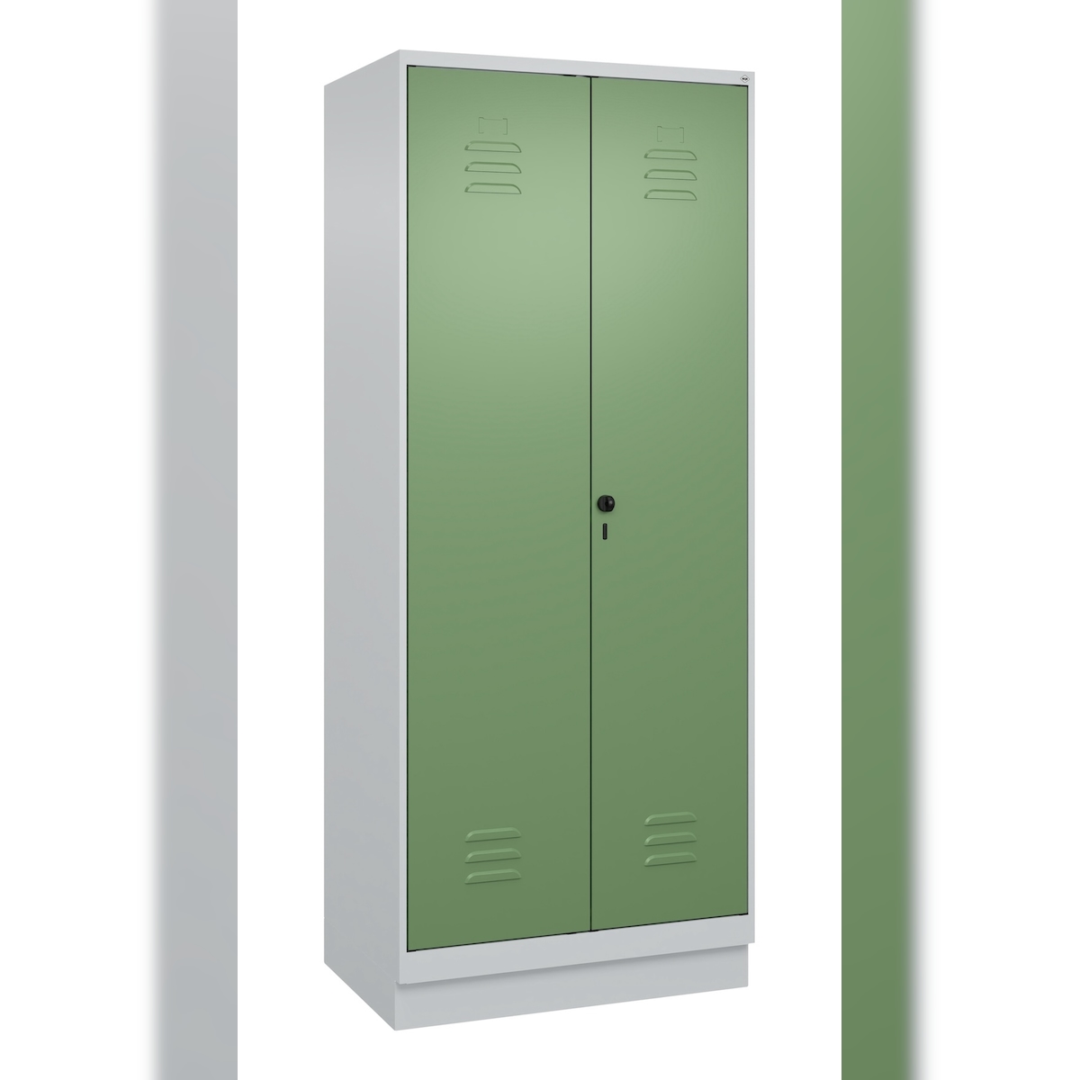 C+P Doppel-Spind Classic PLUS, Sockel, 2 Abteile, HxBxT 195x80x50cm, Sicherheitsdrehriegel, Hellgrau/Resedagrün von PROREGAL