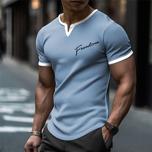 Per uomo Grafico Patchwork Lettera Maglietta a nido d'ape Manica Corta maglietta Stampa 3D Scollo a V Camicia Designer Retrò Vintage Casual Sport all'Aperto Ferie Uscire Blu Blu chiaro Nero Primavera