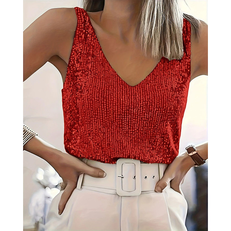 Women's Blouse Sequin Tops Plain Elegant Stylish Western Sleeveless V Neck Regular Tops Daily Holiday Going out Sequins Black White Red Summer Spring Fall