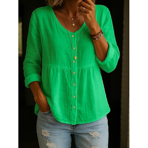 Per donna Camicia Camicie ispirate al lino Blusa Tinta unica Essenziale Casual Manica 3/4 Scollo a V Top Regolari Quotidiano Rosa Blu Cachi Primavera Autunno