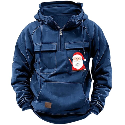 Per uomo Felpa con cappuccio Felpa con cappuccio e zip corta Nero Rosa Vino Blu Verde Con Cappuccio Babbo Natale Coulisse Tasca Sport Outdoor Quotidiano Ferie Natale Streetwear Casual Primavera