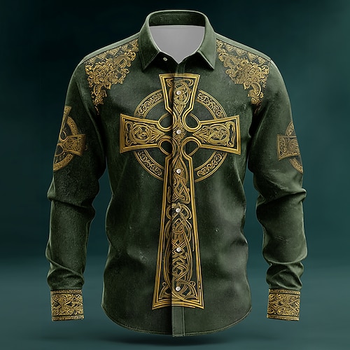 Festa di San Patrizio Per uomo Quadrifoglio Trifoglio Croce celtica Camicia Camicia con Bottoni Manica Lunga Vintage Retrò Feste Ferie Primavera Autunno Collo ripiegato Stampa 3D Camicia tipo lino