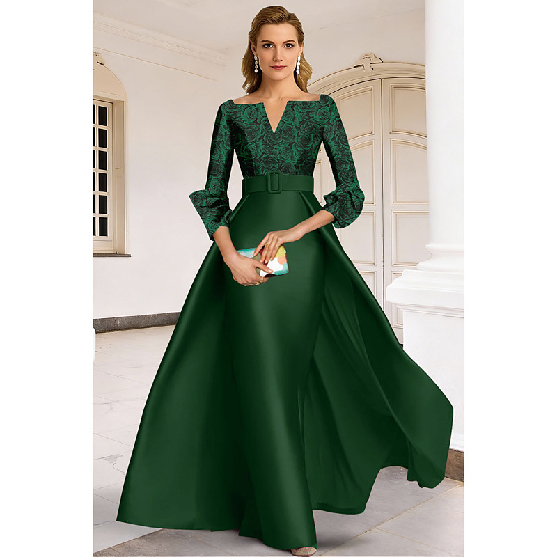 Mermaid Trumpet Floor Length Wedding Guest Dress Formal Dresses Evening Gown Mother of the Bride Dress 3/4 Length Sleeve Illusion Neck Elegant Mother Engagement Satin Lace with Appliques