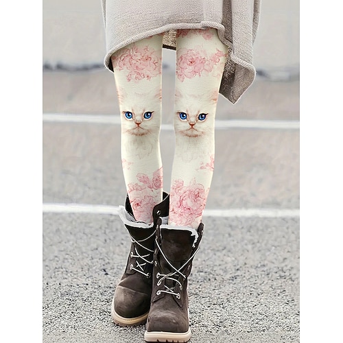 Per donna Leggings Attivo Vacanza Moda Lunghezza intera Vita Alta Gatto Stampato Taglio alto Comodità All'aperto Confortevole Elasticizzato Bianco Estate Primavera Autunno Vestibilità aderente