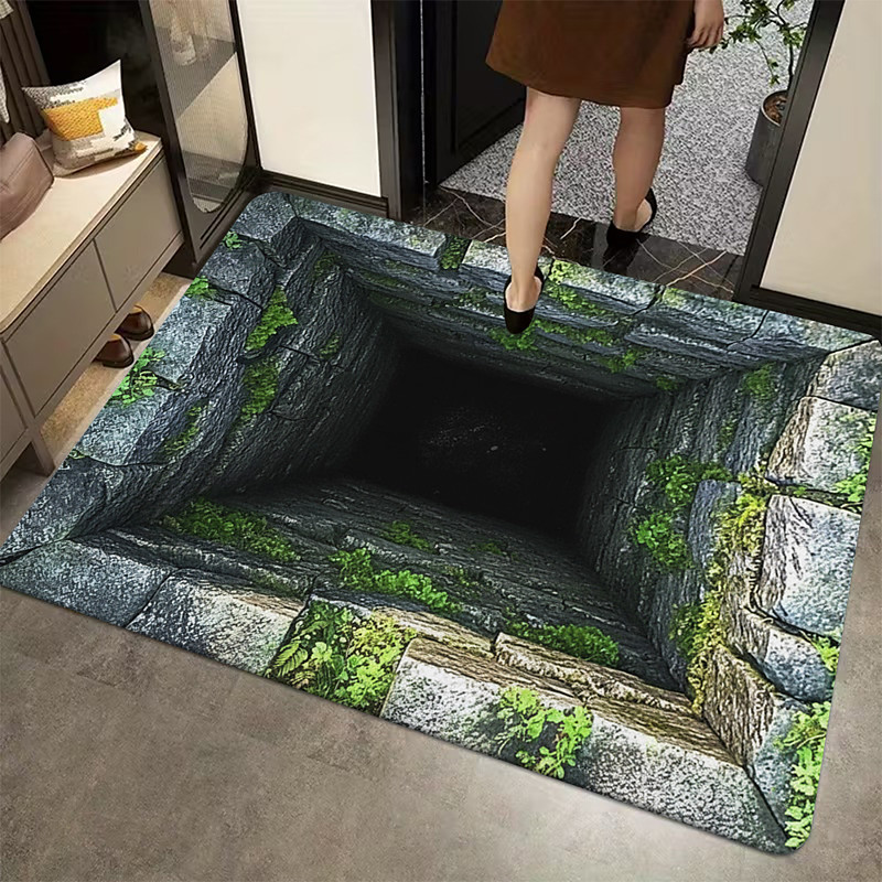 3D Optical Illusion Doormat Visual Trap Floor Mat Non Slip for Doorway Entryway Bathroom Shower Kitchen Indoor Outdoor Diatomaceous Earth Quick Dry Absorbent 20 x 31 inch