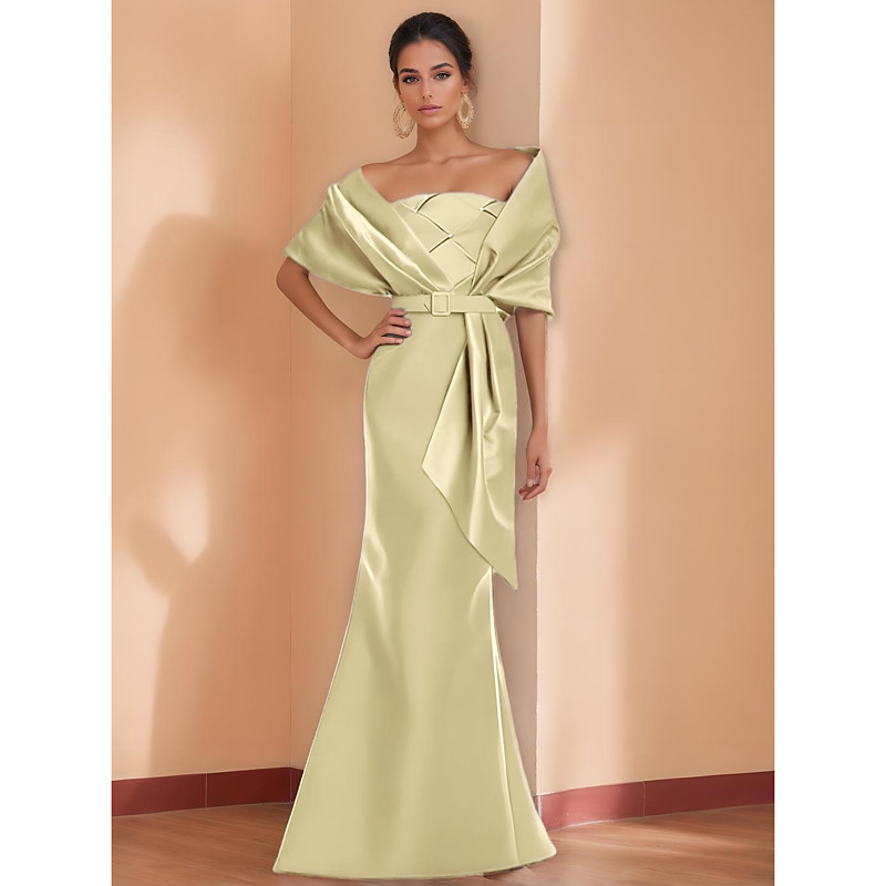 Mermaid Trumpet Floor Length Prom Dresses Evening Gown Ball Gown Formal Dress Elegant Silky Mother Of The Bride Short Sleeve Spaghetti Strap Wedding Formal Belt / Sash Satin with Ruffles Shawl