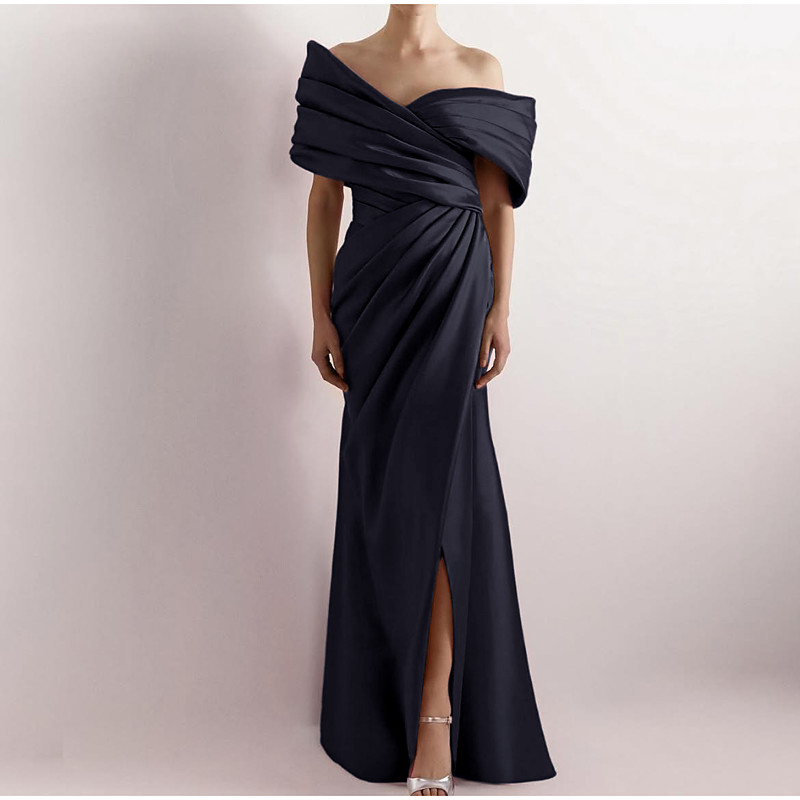 Sheath Column Floor Length Prom Dresses Evening Gown Ball Gown Formal Dress Elegant Celebrity Style Sleeveless Off Shoulder Garden Party Wedding Satin with Pleats