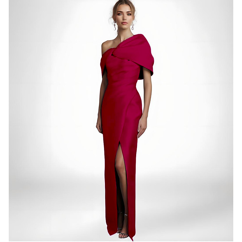Mermaid Trumpet Ankle Length Prom Dresses Evening Gown Ball Gown Formal Dress Elegant Sleeveless One Shoulder Formal Wedding Guest Satin with Bow(s) Slit