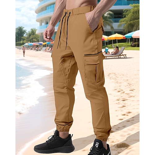 Herren Cargo-Hosen Hose Kordelzug Elastischer Bund Mehrere Taschen Einfach tragbar Outdoor Täglich Campen und Wandern Mode Klassisch Schwarz Armeegrün