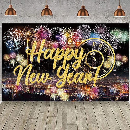 Capodanno arazzo Striscioni Coperta Buon anno Carino Romantico Moderno Camera da letto Soggiorno Dormitorio Stanza per adolescenti Dormitorio universitario Portico a muro Arredamento per la casa