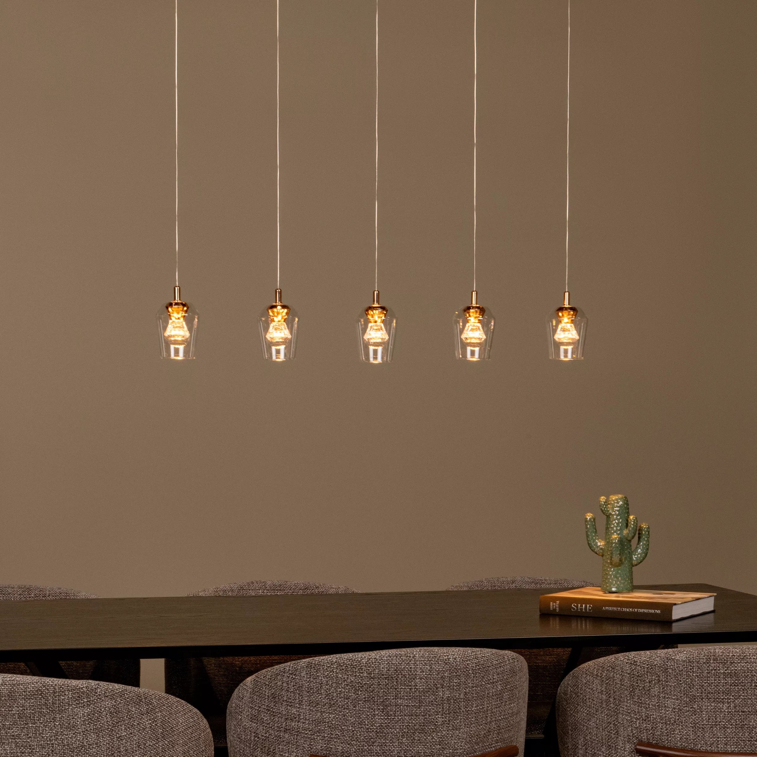 Lucide Berliane - hanglamp - 93 x 11 x 164,5 cm - 5 x 4W dimbare LED incl. - transparant en goud