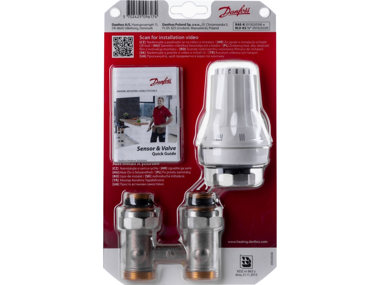 Danfoss 2-Element gerade - Anschlusskopf RAE-K, Anschlussmodul VKO DANFOS Heizkörper KERMI,KORADO,PURMO,RADSON,STELRAD
