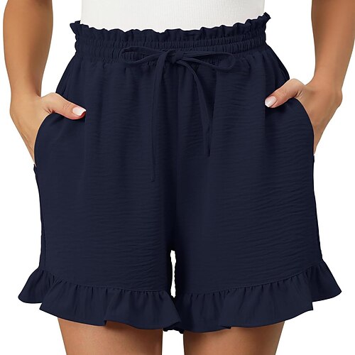 Damen Shorts Sommershorts Strandshorts Freizeitshorts Urlaub Mode Alltagstauglich Kurz Hohe Taille Einfarbig Einfach Kordelzug Patchwork Elastischer Bund Komfort Weich Atmungsaktiv Mikroelastisch